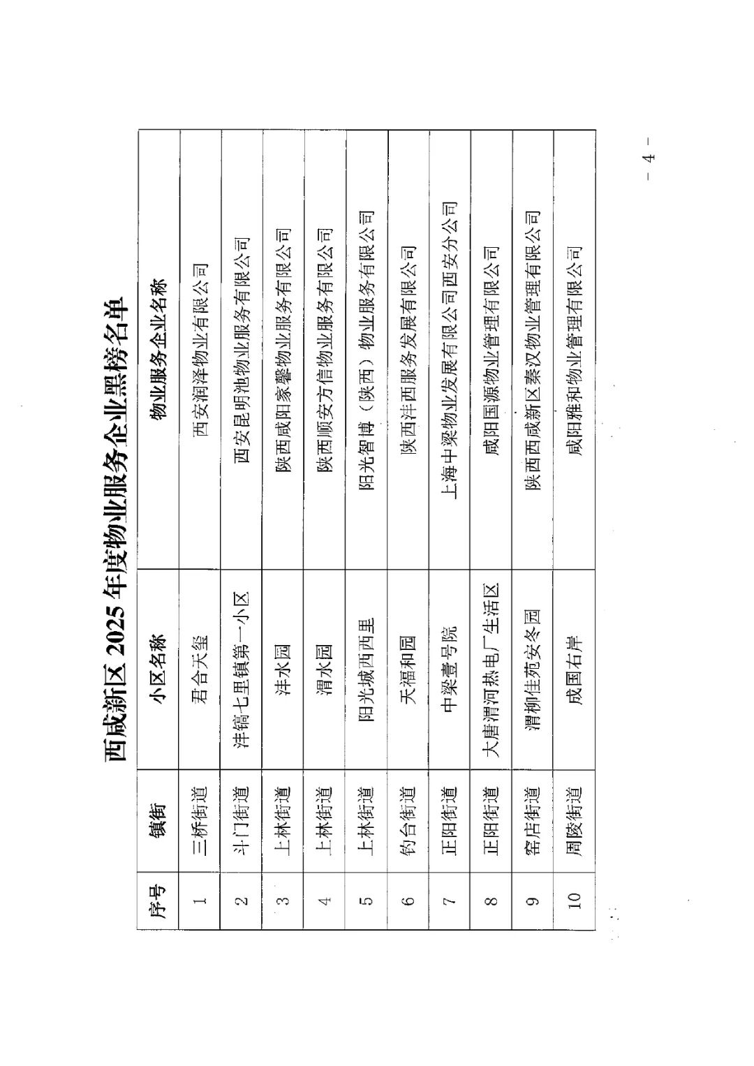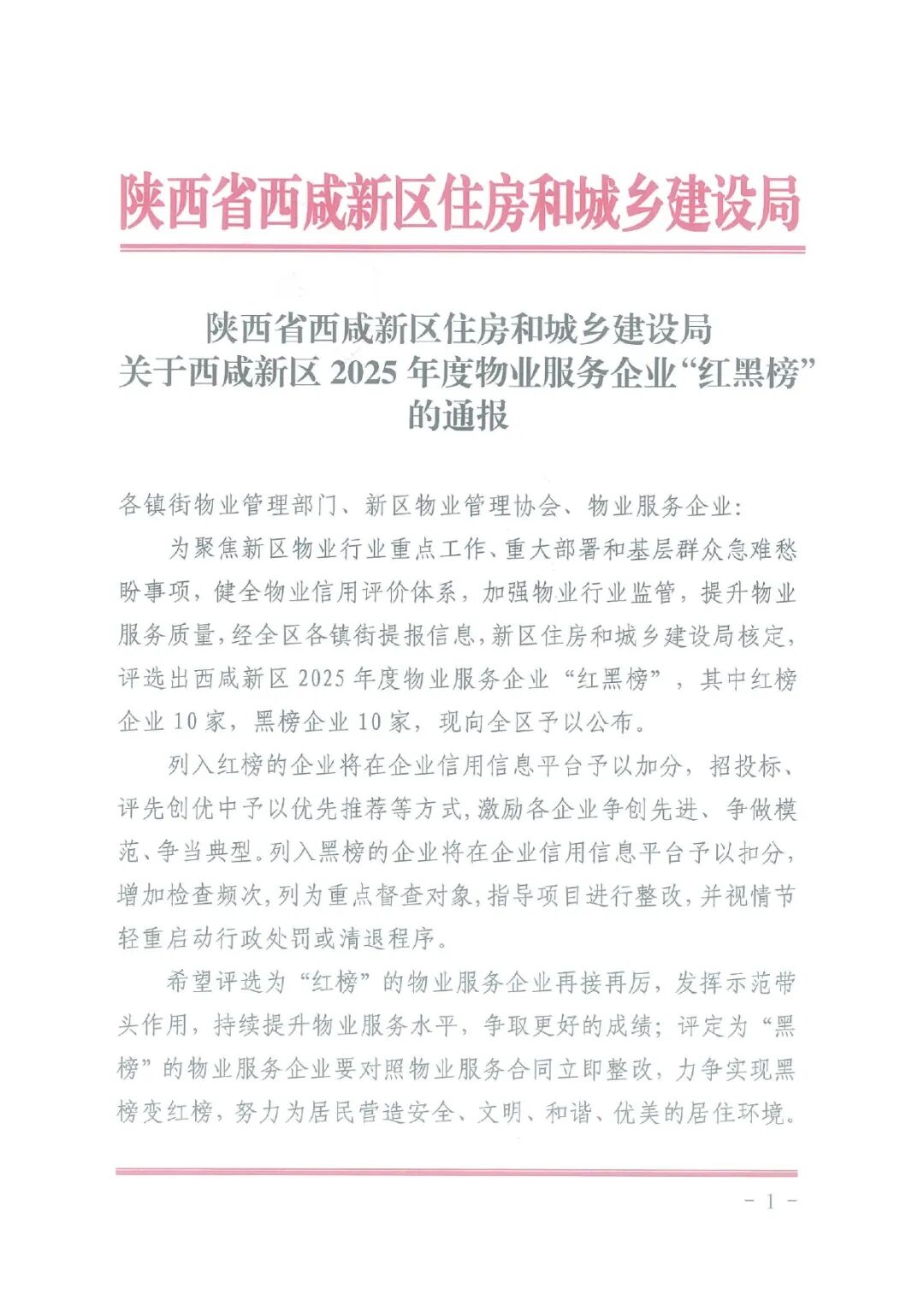 【通知公告】陕西省西咸新区住房和城乡建设局关于西咸新区2025年度物业服务企业“红黑榜”的通报