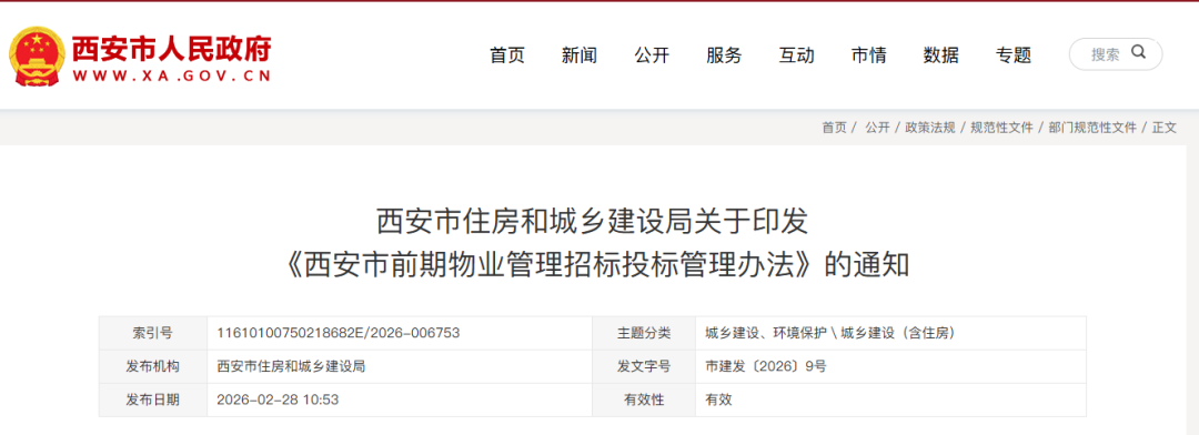 【政策文件】西安市住房和城乡建设局关于印发《西安市前期物业管理招标投标管理办法》的通知